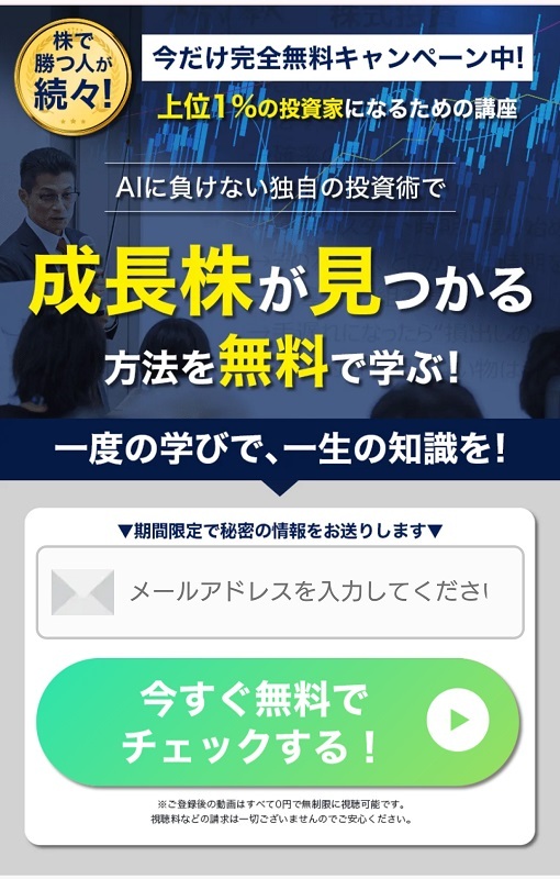 大岩川先生のこれから大口投資家の動きを先回りする裏ワザは以下のキャンペーンサイトでメールアドレスを入力して受け取るだけ!たった30秒で完了です。(もちろん無料です)